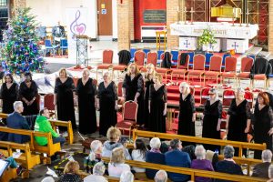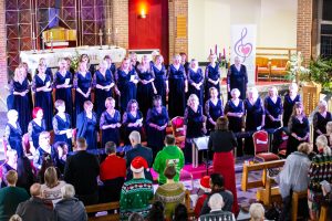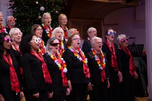 The final two songs of the first half saw the choir turn to face the back of the church, while they donned their lei and tropical sunglasses to sing the Hawaiian Christmas song, Mele Kalikimaka, complete with swaying, Finally, the 12 days after Christmas – a favourite of the choir, but a new one for most of the audience. It went down very well
